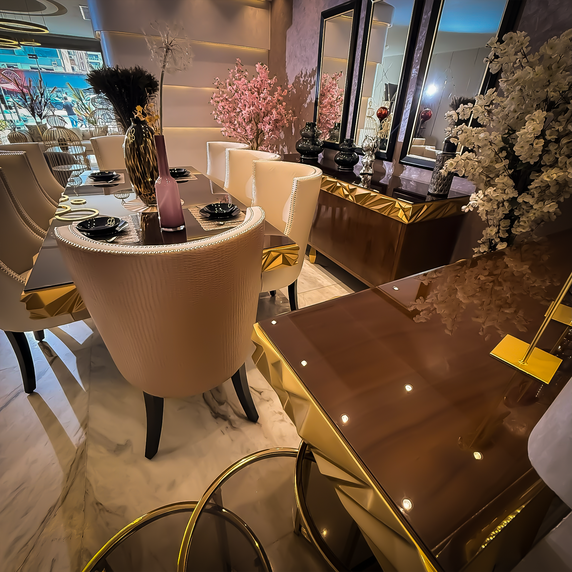 Table + 8 chairs + buffet with mirrors
