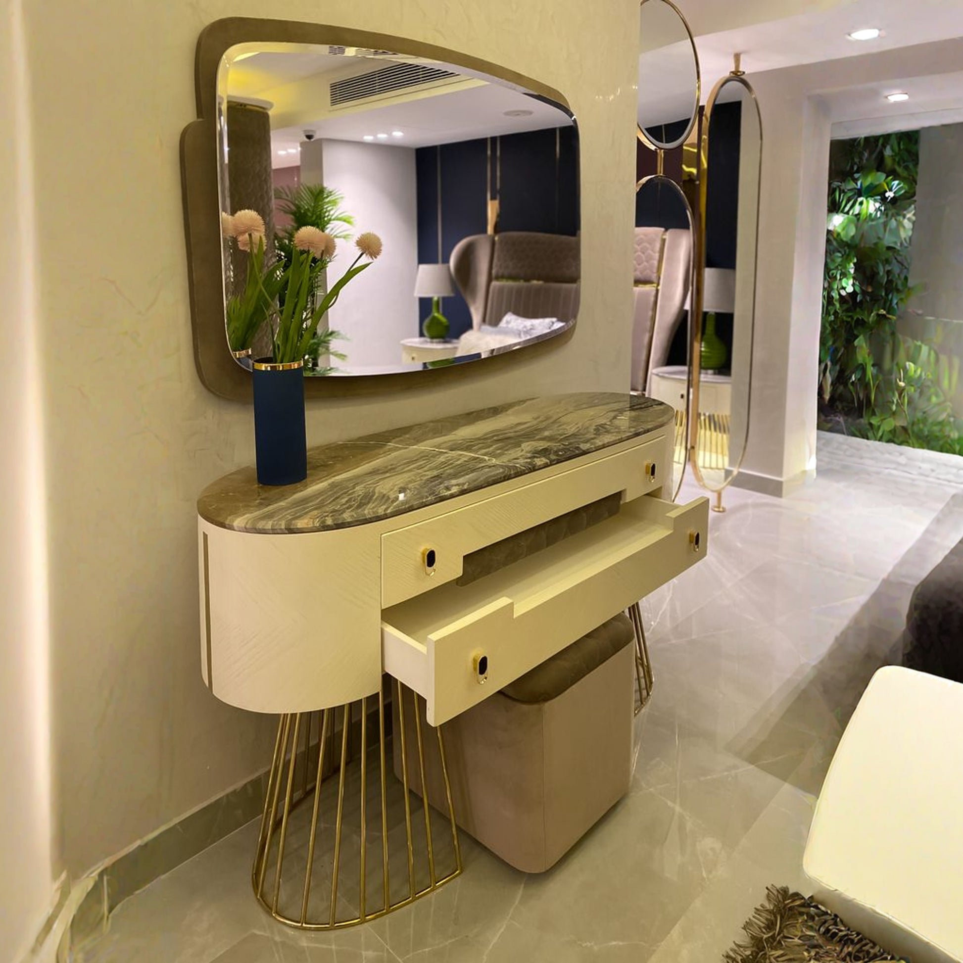 Refined Aesthetics: Features a rich, deep finish / clean lines and integrated lighting that exude sophistication.
